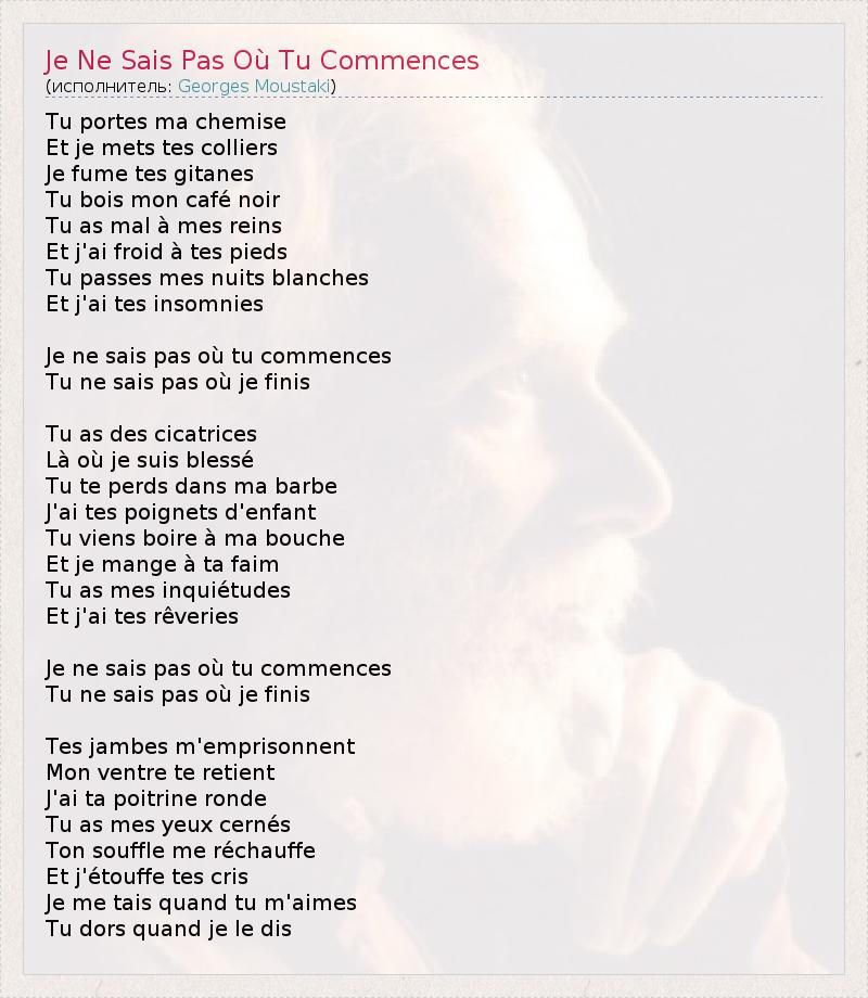 А как ты думаешь, о чем песня "Je Ne Sais Pas Où Tu Commences" ?