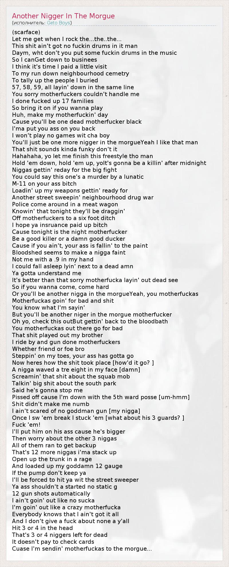 ГлавнаяИсполнителиGeto BoysAnother Nigger In The Morgue