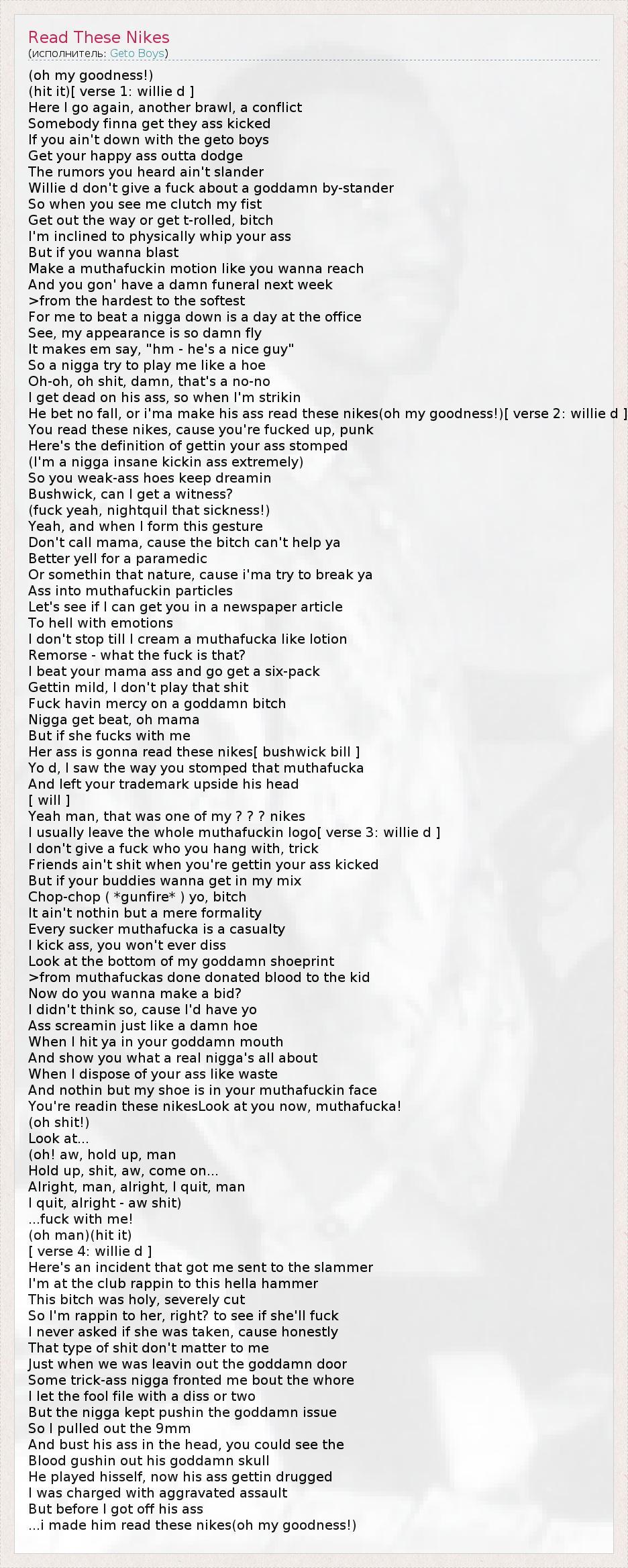 А как ты думаешь, о чем песня "Read These Nikes" ?