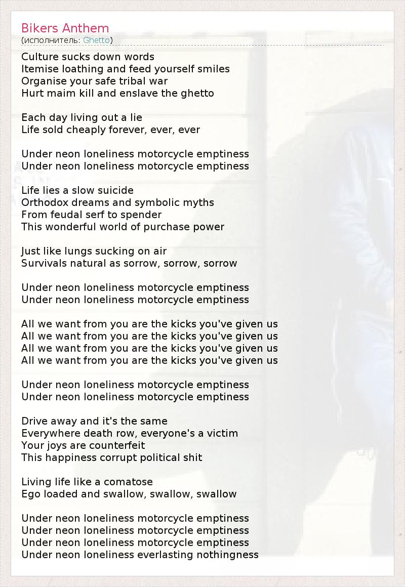 А как ты думаешь, о чем песня "Bikers Anthem" ?