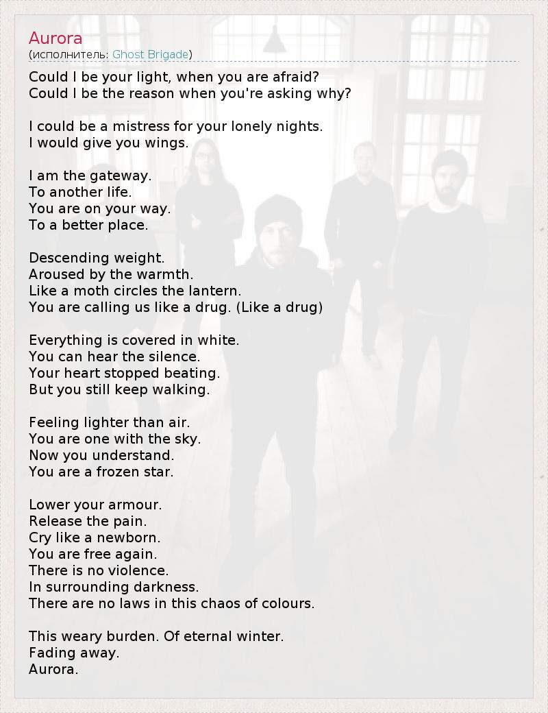 Aurora borealis - сленговое название наркотика PCP (фенциклидин), в рускоязычной среде "ангельская пыль". Это кристаллическое вещество, имеющее белый или желтовато-белый цвет, горький на вкус. При первых употреблениях, у человека идет ассоциация с раем, с пучиной наслаждений и со счастьем. Именно это и послужило причиной такого названия.