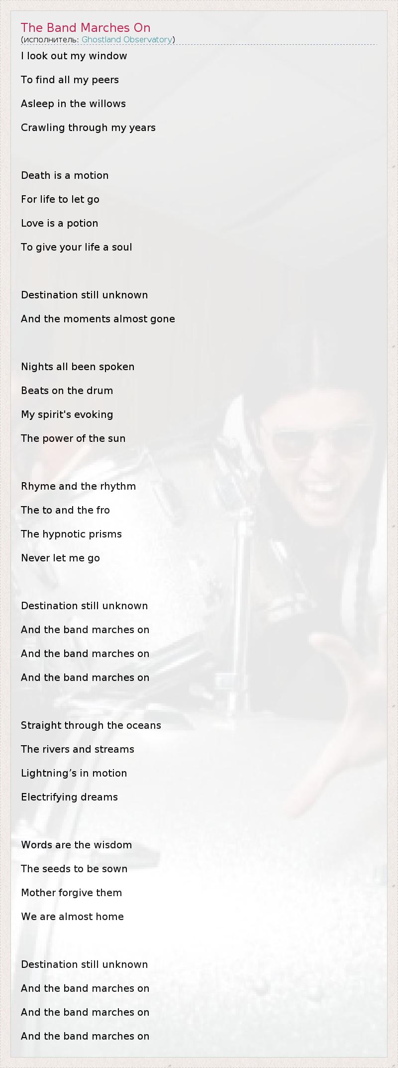 А как ты думаешь, о чем песня "The Band Marches On" ?