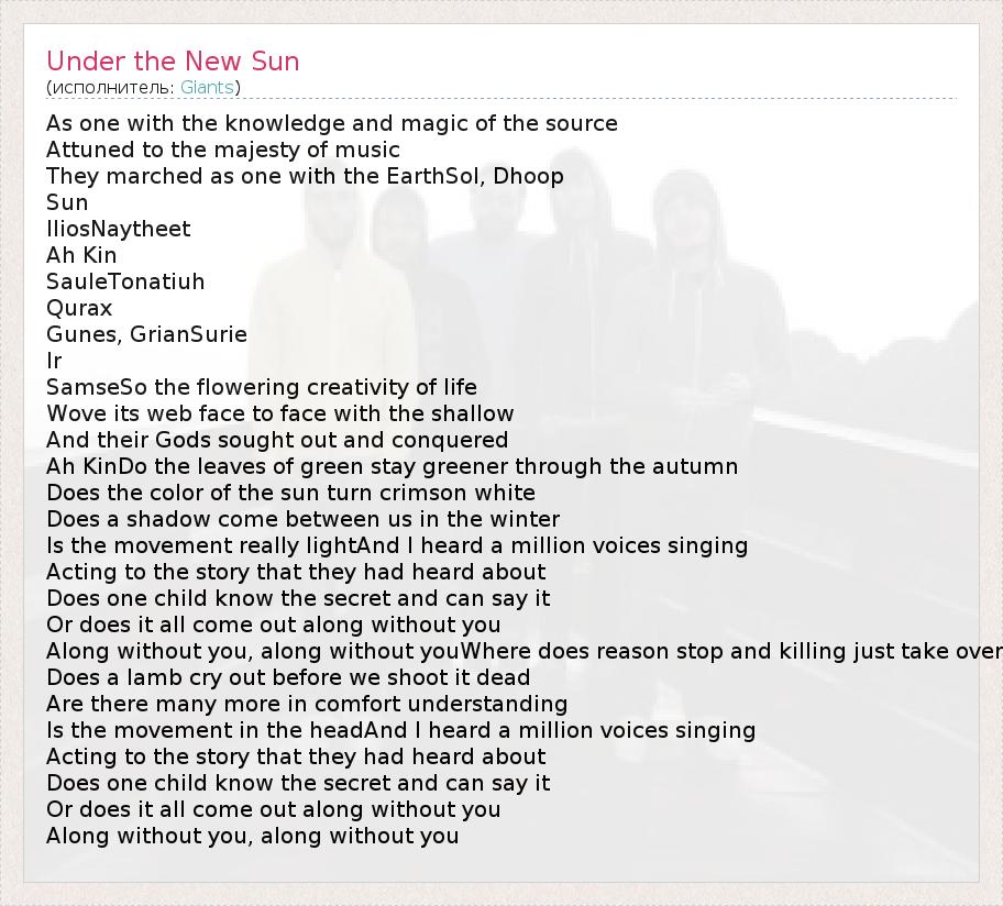А как ты думаешь, о чем песня "Under the New Sun" ?