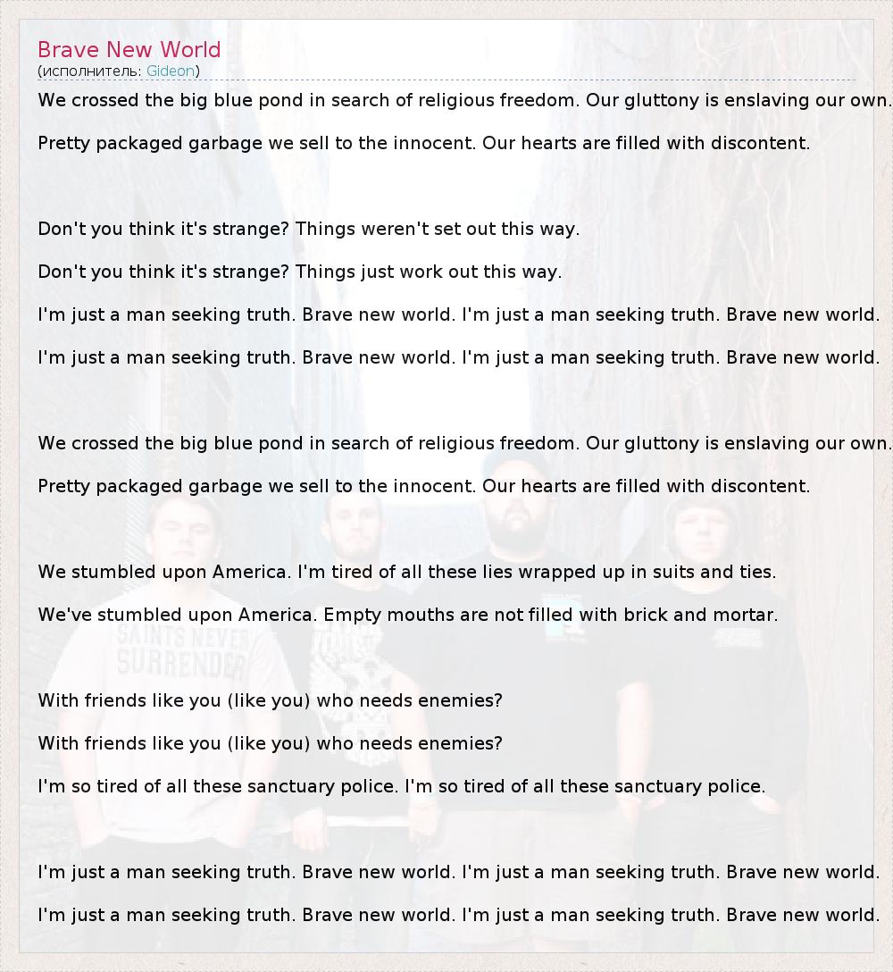 I'm just a man seeking truth. Brave new world. I'm just a man seeking truth. Brave new world.