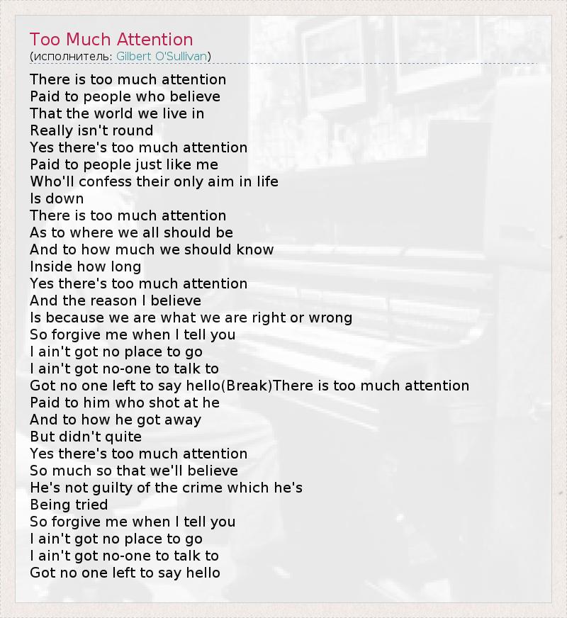 А как ты думаешь, о чем песня "Too Much Attention" ?