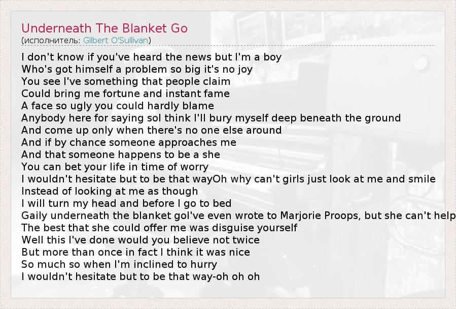 А как ты думаешь, о чем песня "Underneath The Blanket Go" ?