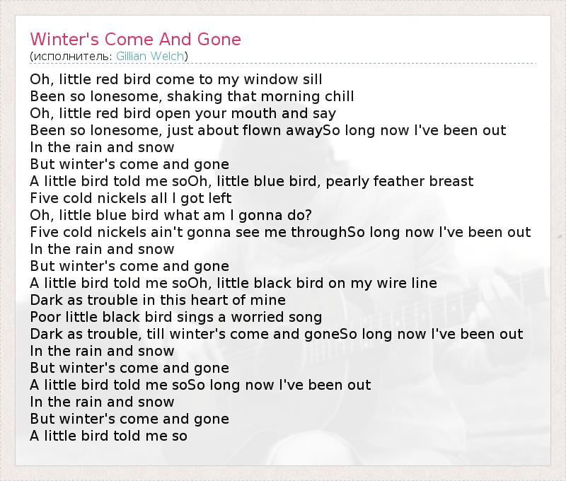 А как ты думаешь, о чем песня "Winter's Come And Gone" ?