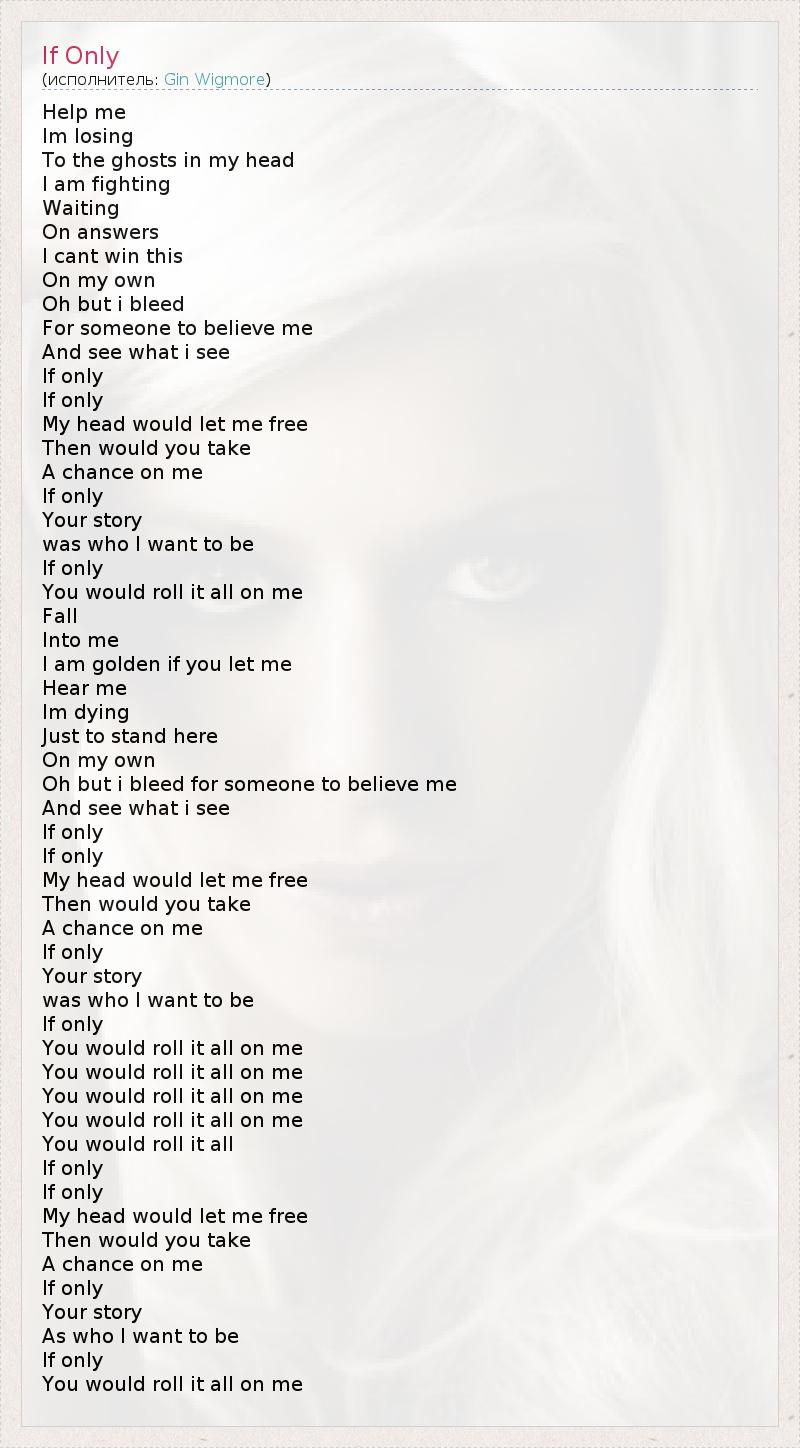 Это интересно:Джин Вигмор (англ. Gin Wigmore, настоящее имя Virginia Wigmore; род. 6 июня 1986, Окленд, Новая Зеландия) — новозеландская певица и гитаристка. Наибольшую популярность обрела благодаря песне «Brother», которая продержалась 11 недель на первом месте в чарте RIANZ. В 2009 году выпустила дебютный альбом «Holy Smoke», который стал трижды платиновым в Новой Зеландии и открытием года в США. 7 ноября 2011 года выпустила свой... продолжение