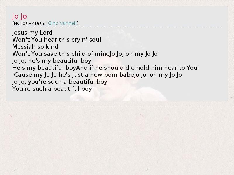 А как ты думаешь, о чем песня "Jo Jo" ?