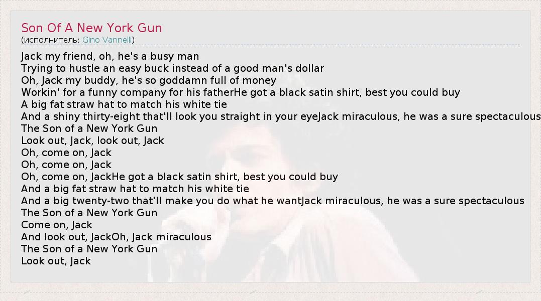 А как ты думаешь, о чем песня "Son Of A New York Gun" ?