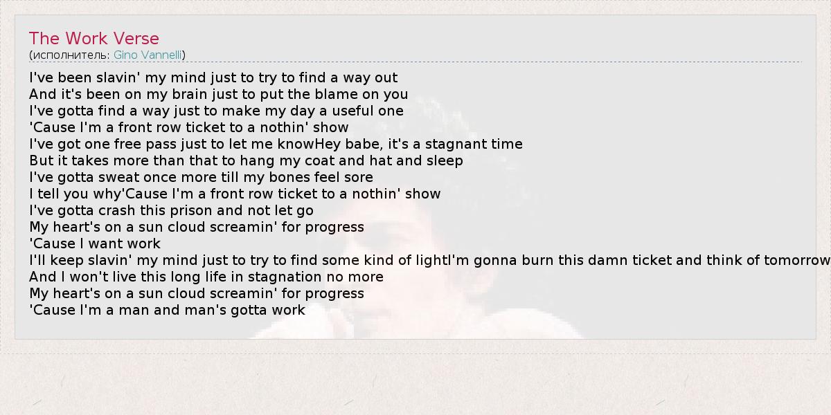 А как ты думаешь, о чем песня "The Work Verse" ?