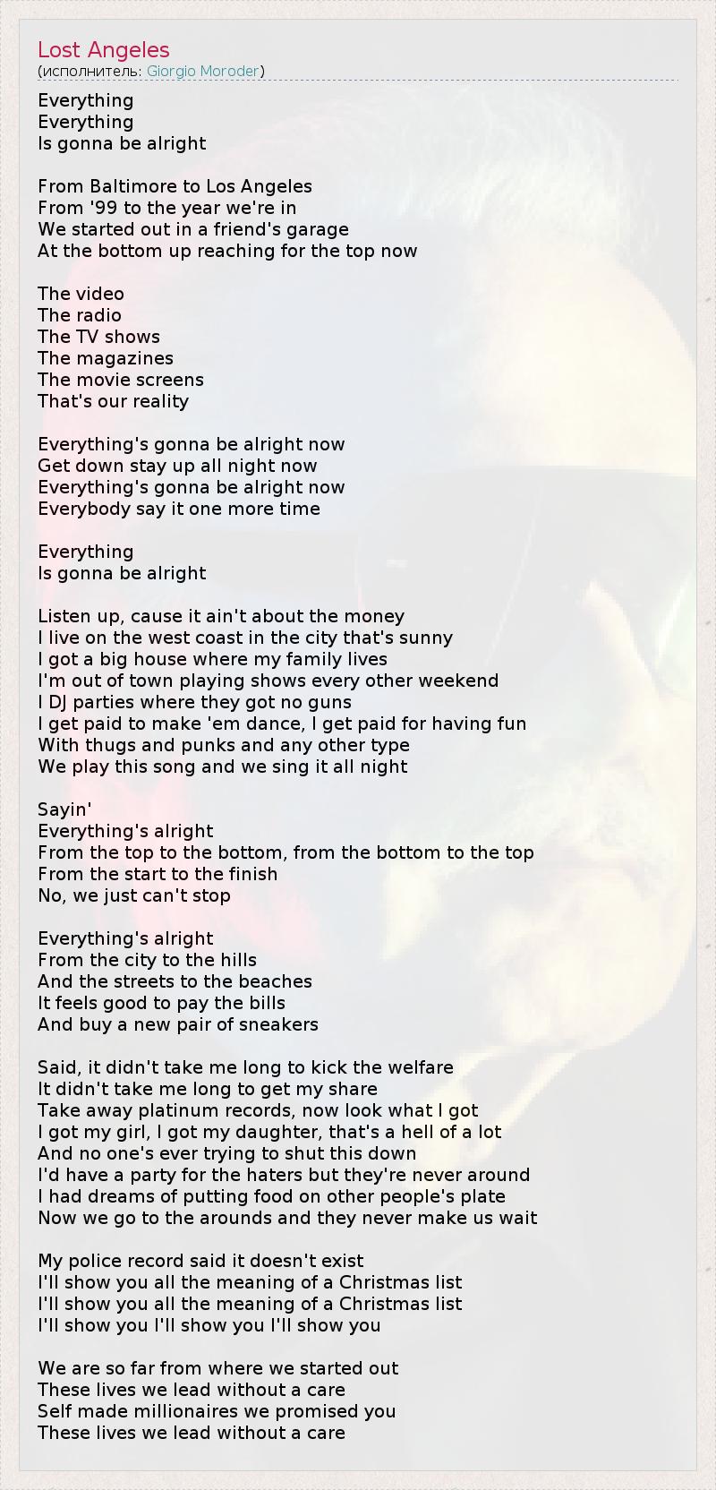 А как ты думаешь, о чем песня "Lost Angeles" ?