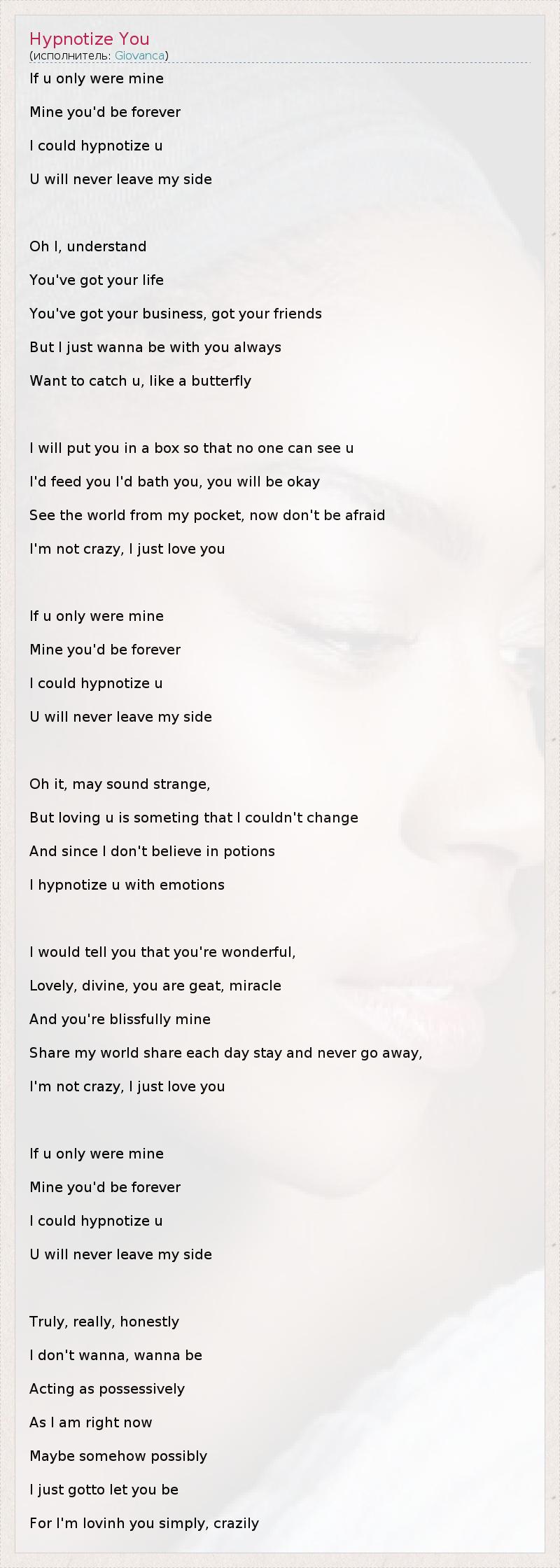 А как ты думаешь, о чем песня "Hypnotize You" ?