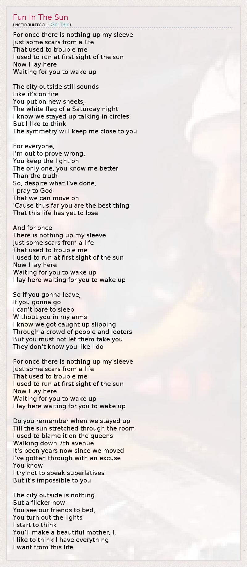 А как ты думаешь, о чем песня "Fun In The Sun" ?
