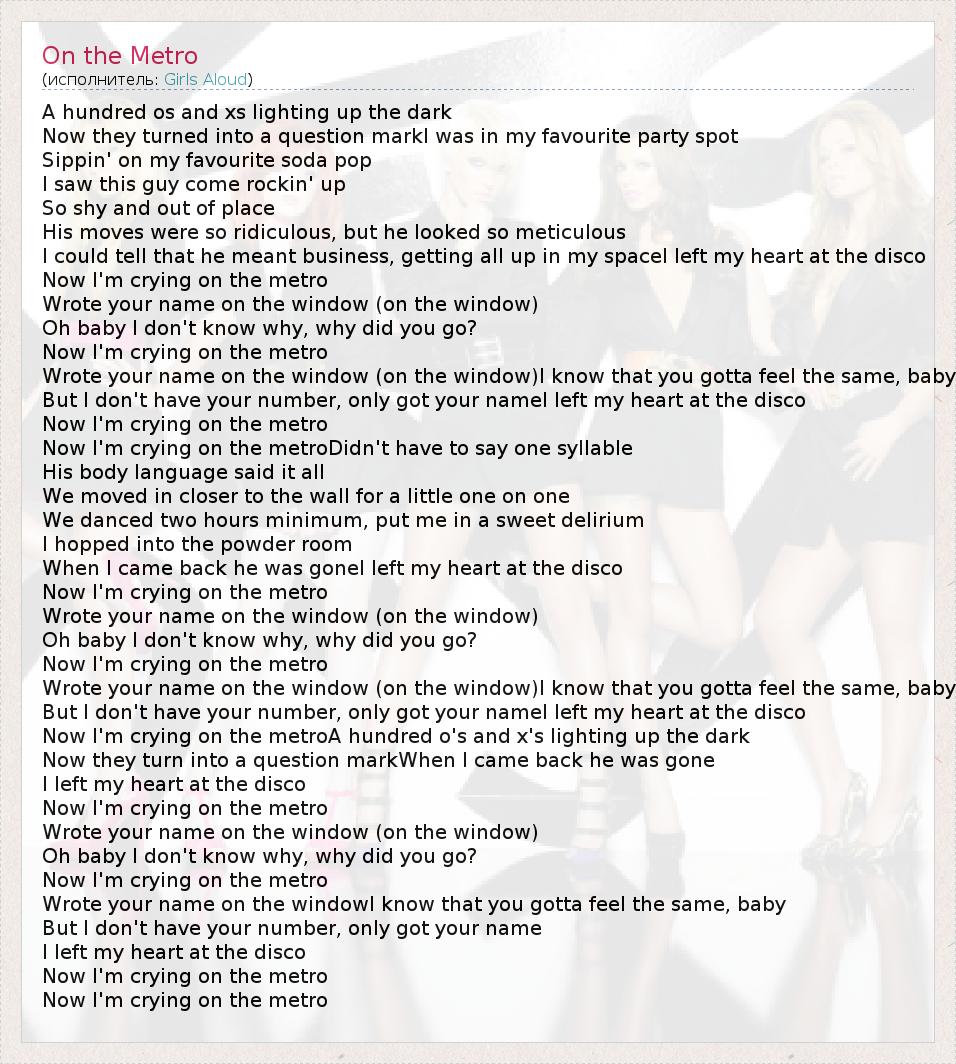 Now I'm crying on the metroA hundred o's and x's lighting up the dark