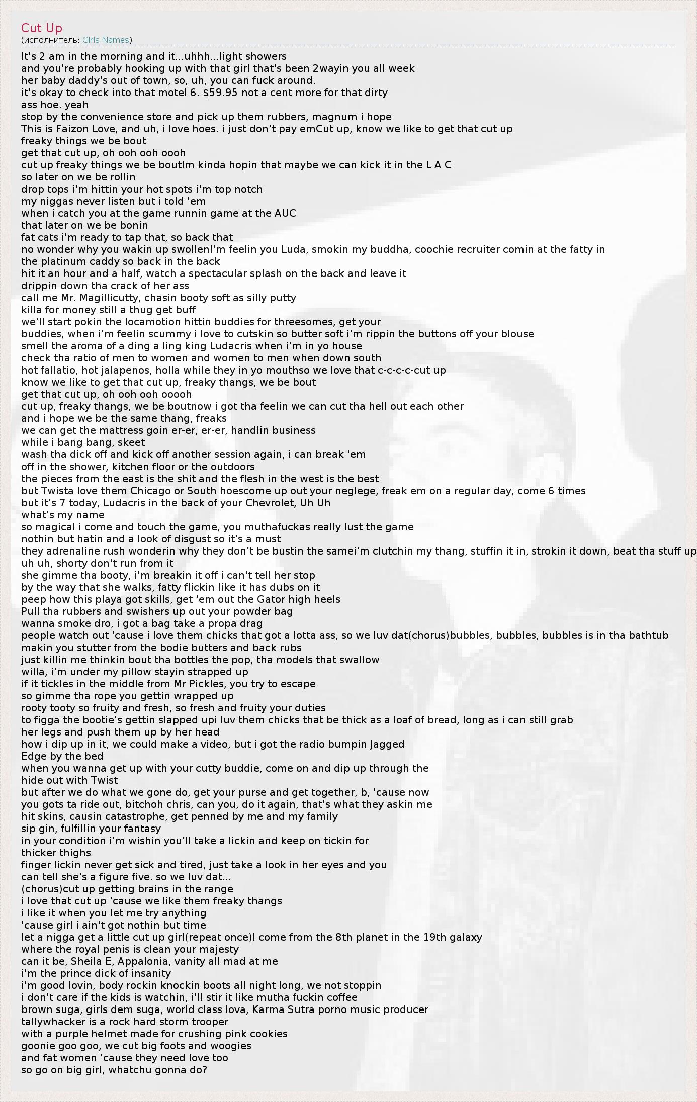 cut up, freaky thangs, we be boutnow i got tha feelin we can cut tha hell out each other