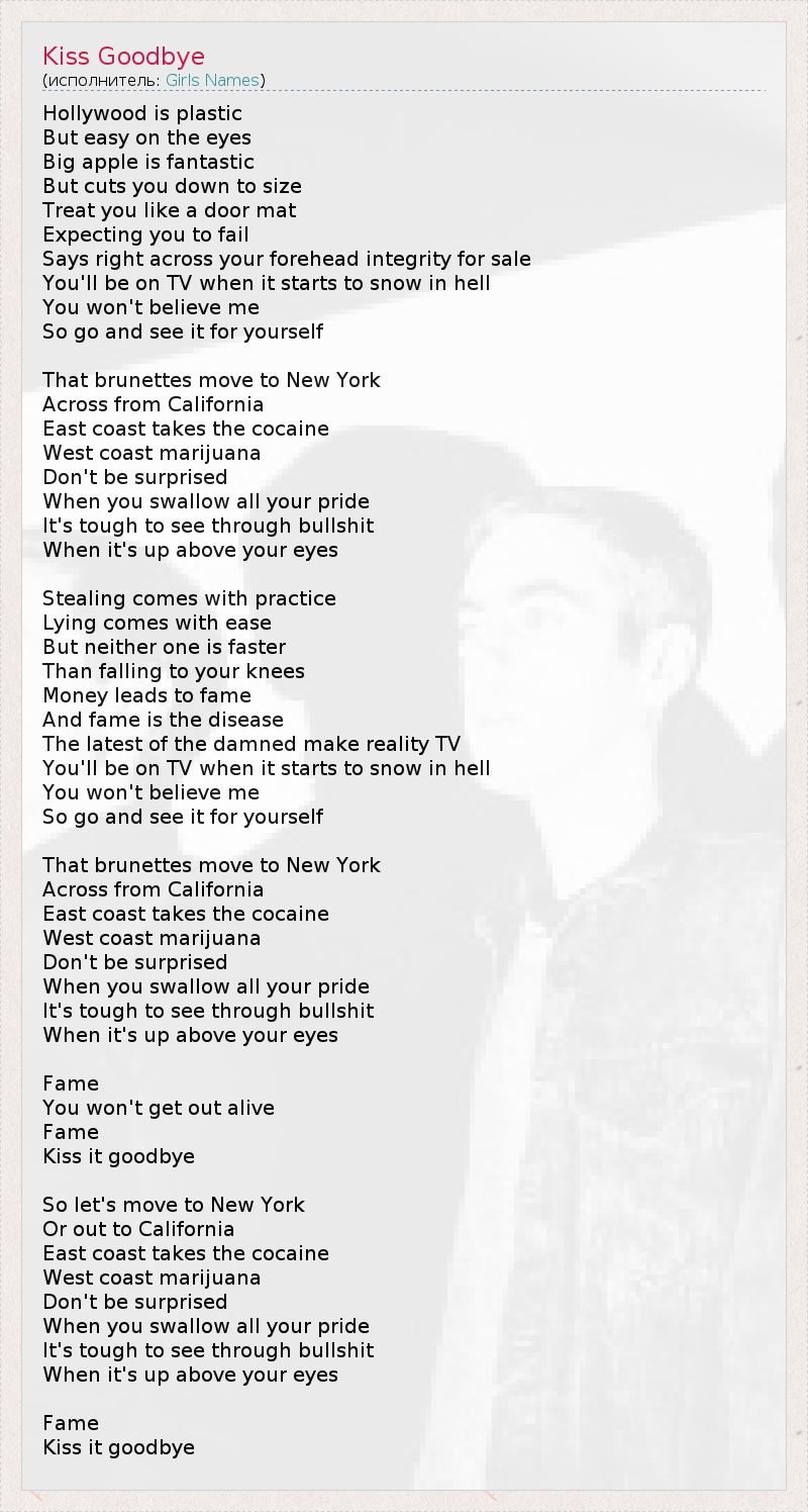А как ты думаешь, о чем песня "Kiss Goodbye" ?