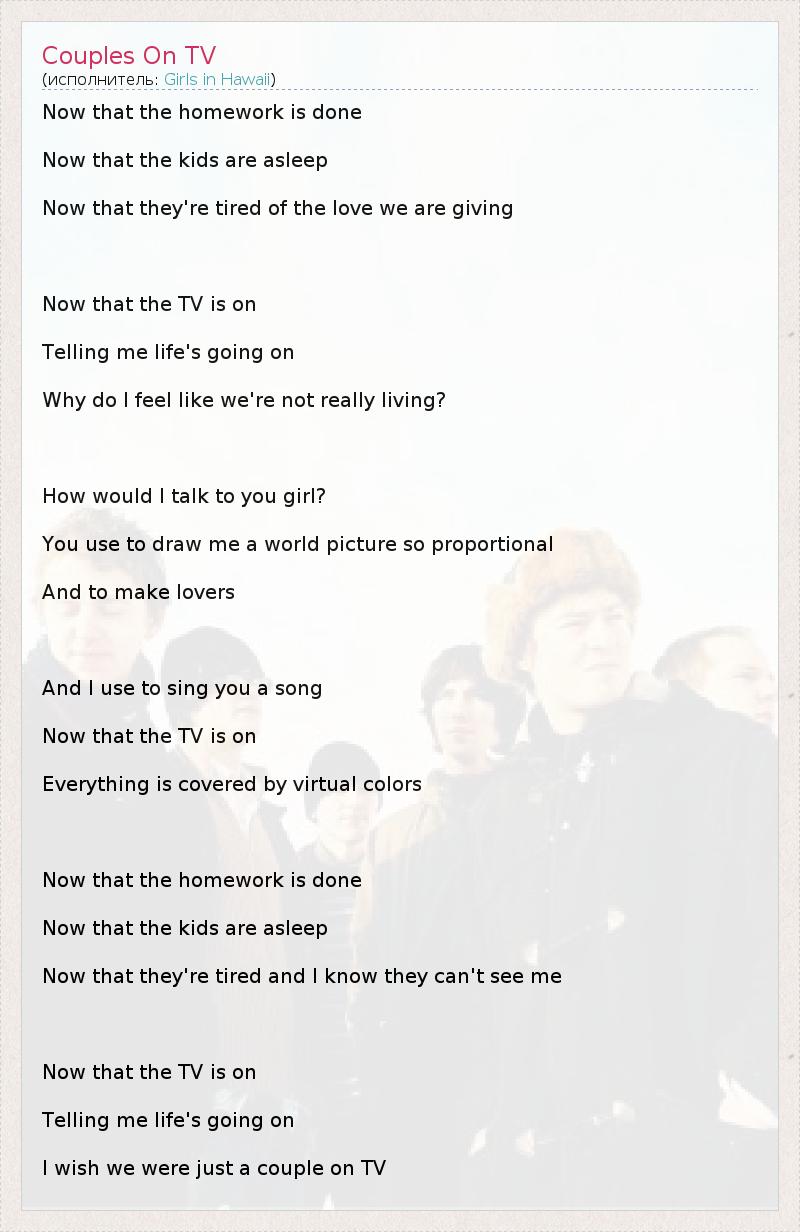 А как ты думаешь, о чем песня "Couples On TV" ?