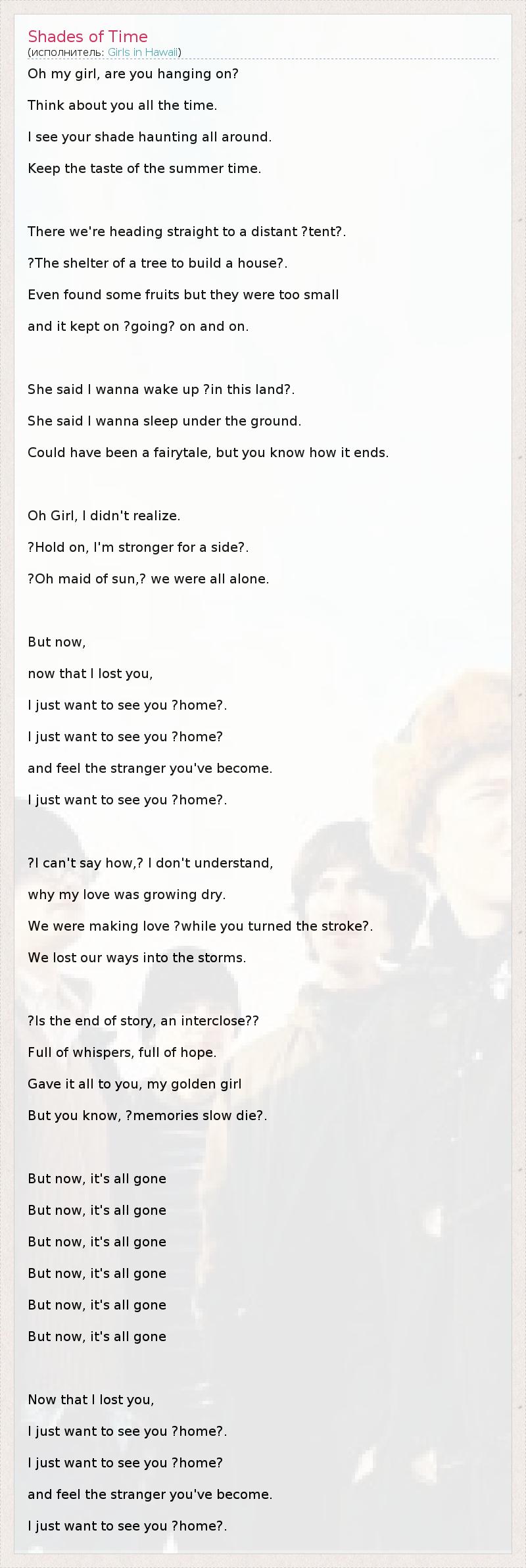 А как ты думаешь, о чем песня "Shades of Time" ?