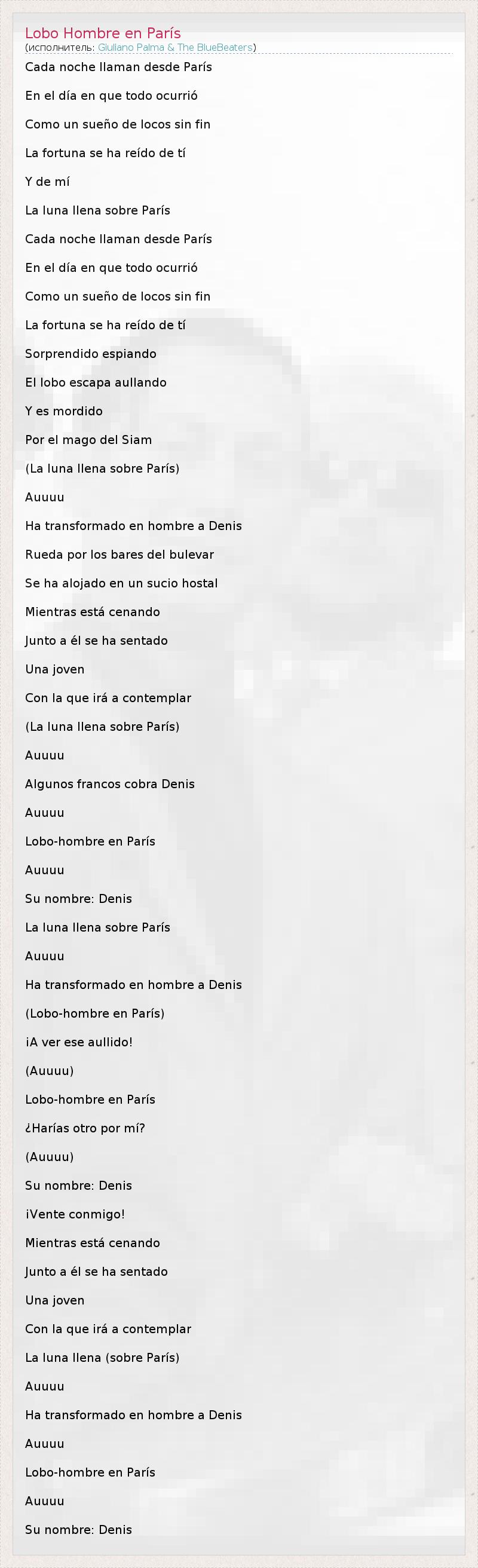 А как ты думаешь, о чем песня "Lobo Hombre en París" ?