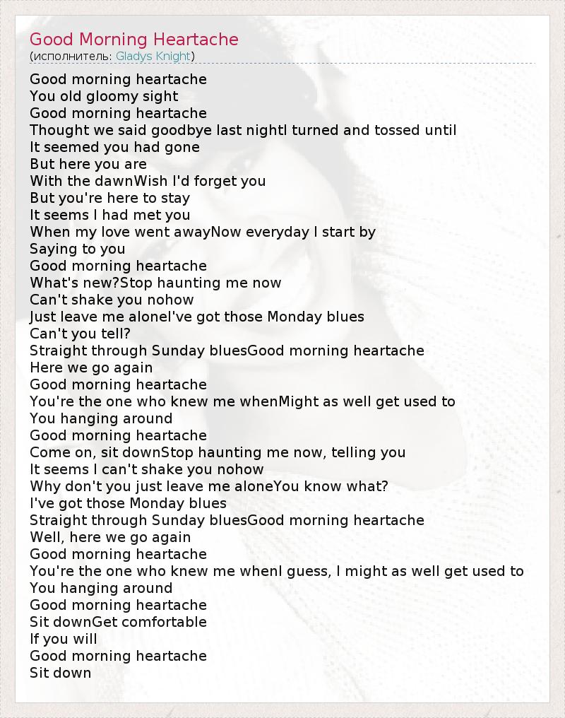 А как ты думаешь, о чем песня "Good Morning Heartache" ?