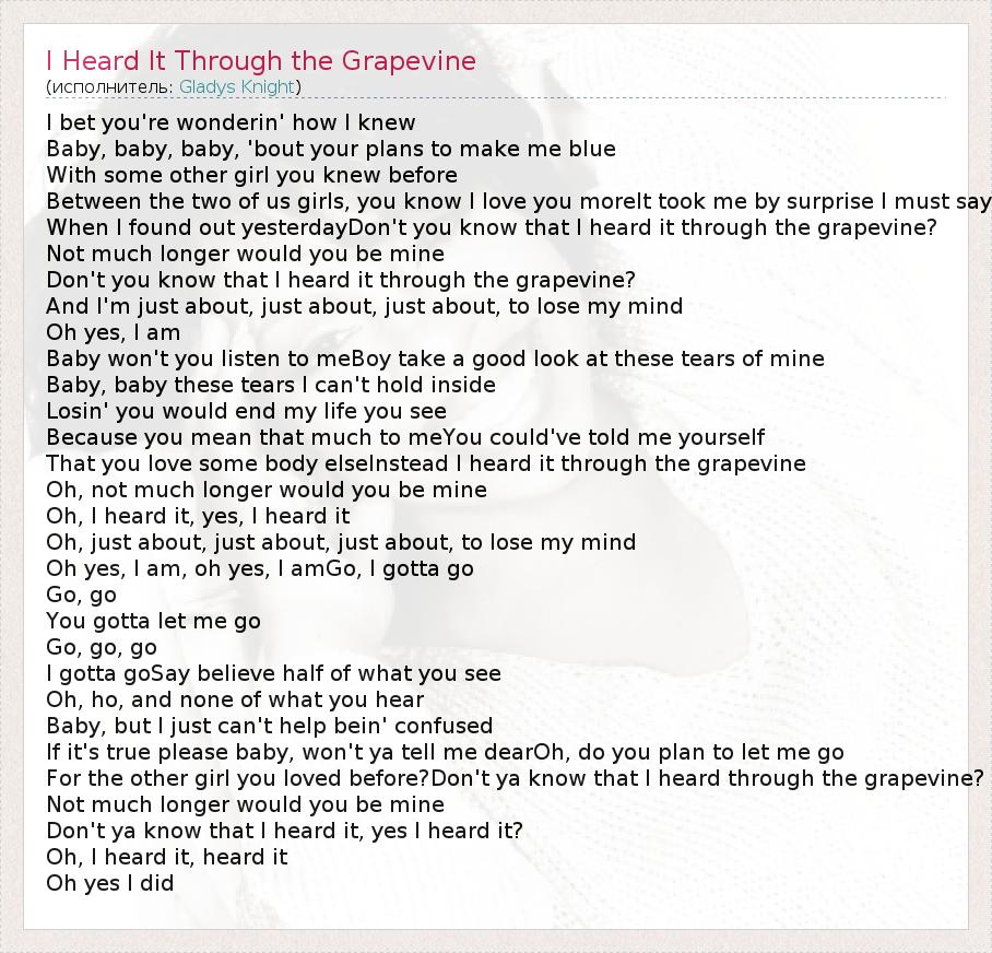 Don't you know that I heard it through the grapevine?