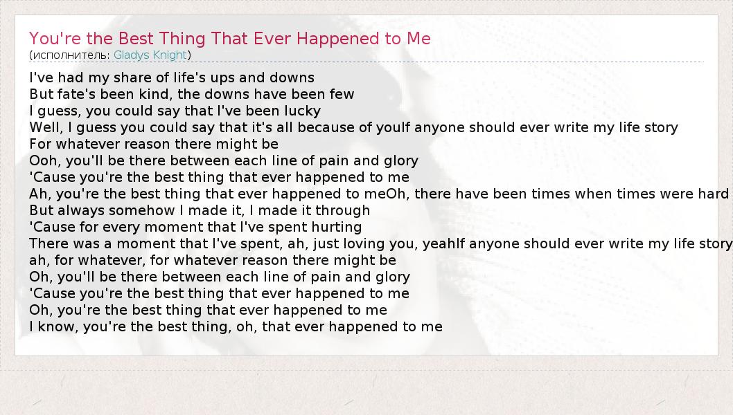 А как ты думаешь, о чем песня "You're the Best Thing That Ever Happened to Me" ?