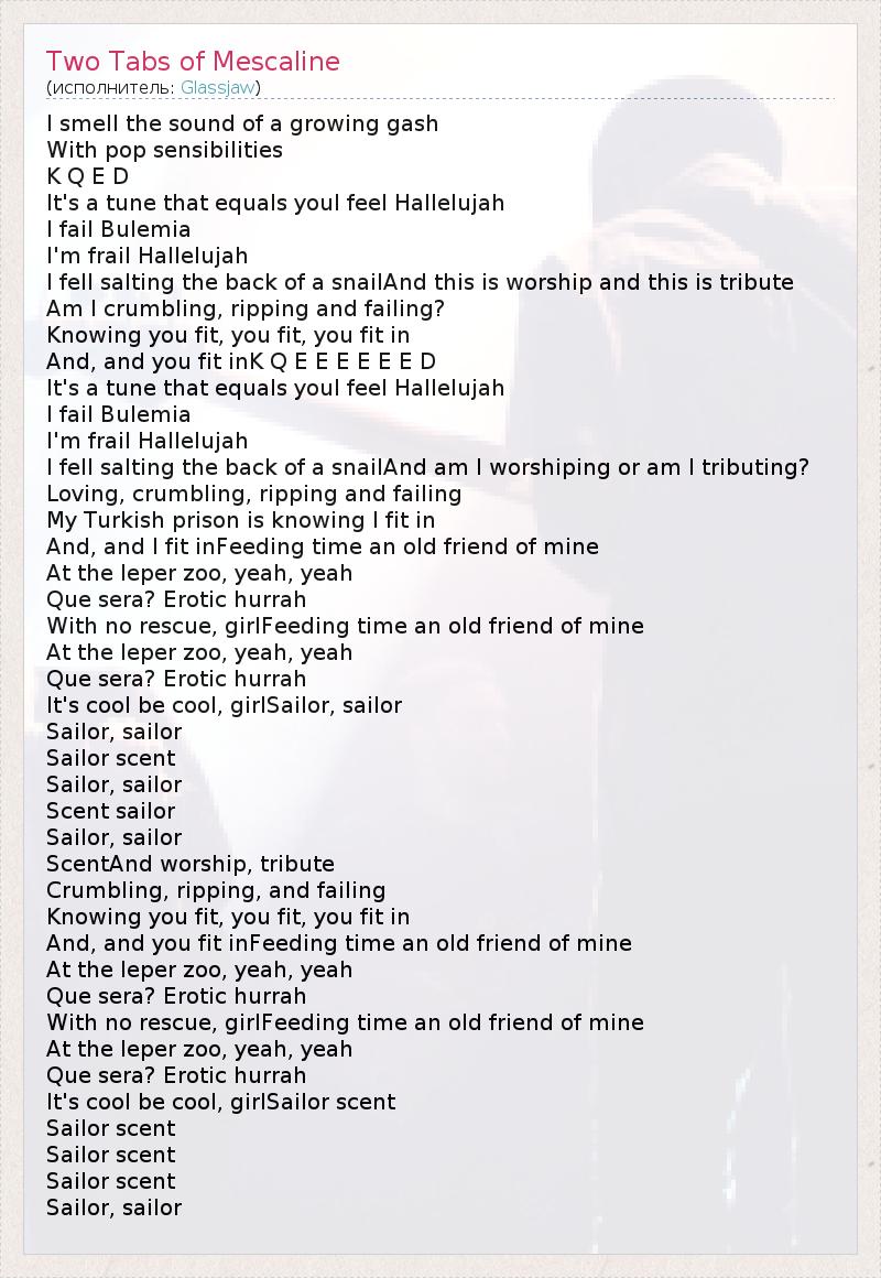 ГлавнаяИсполнителиGlassjawTwo Tabs of Mescaline
