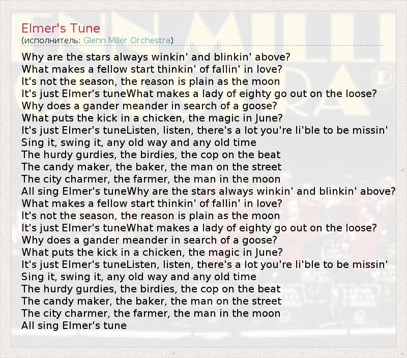 А как ты думаешь, о чем песня "Elmer's Tune" ?