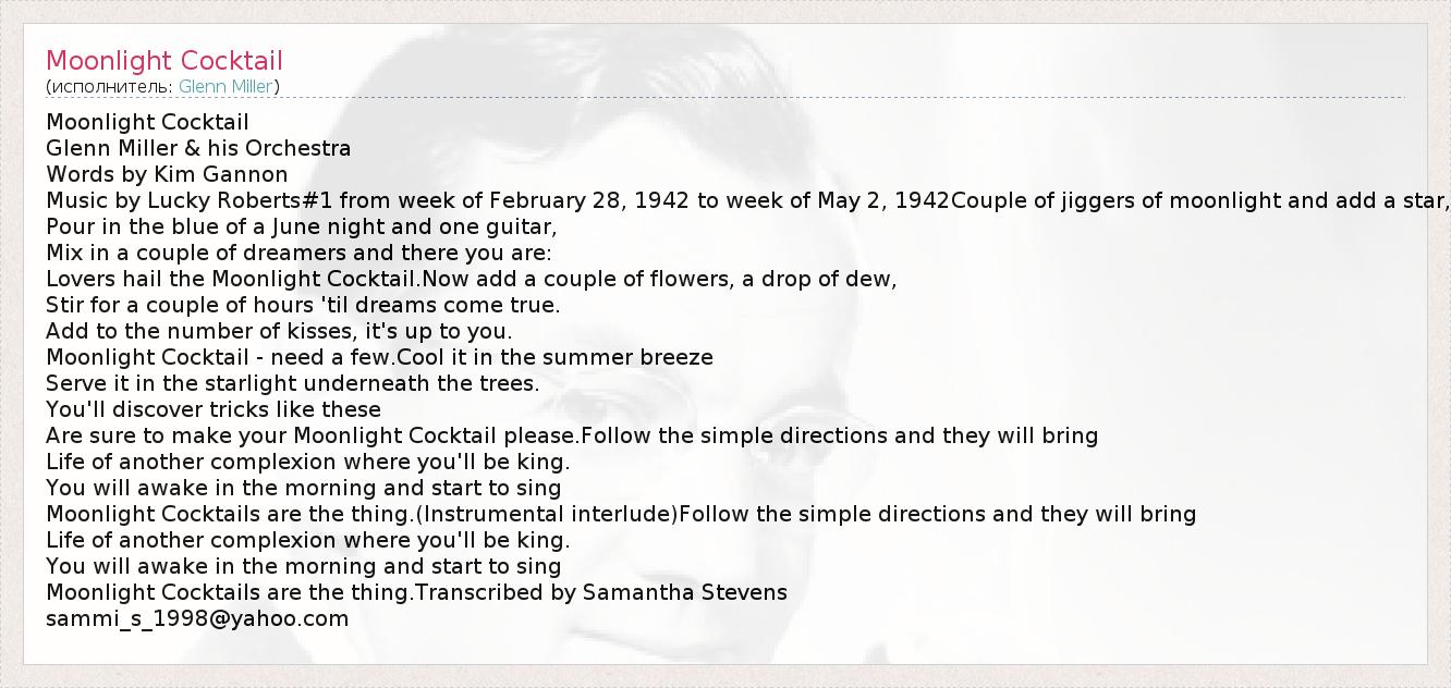 А как ты думаешь, о чем песня "Moonlight Cocktail" ?