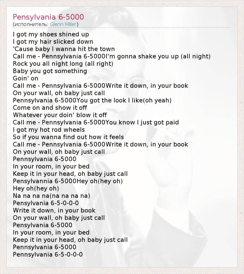 А как ты думаешь, о чем песня "Pensylvania 6-5000" ?
