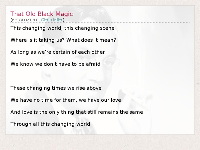 А как ты думаешь, о чем песня "That Old Black Magic" ?