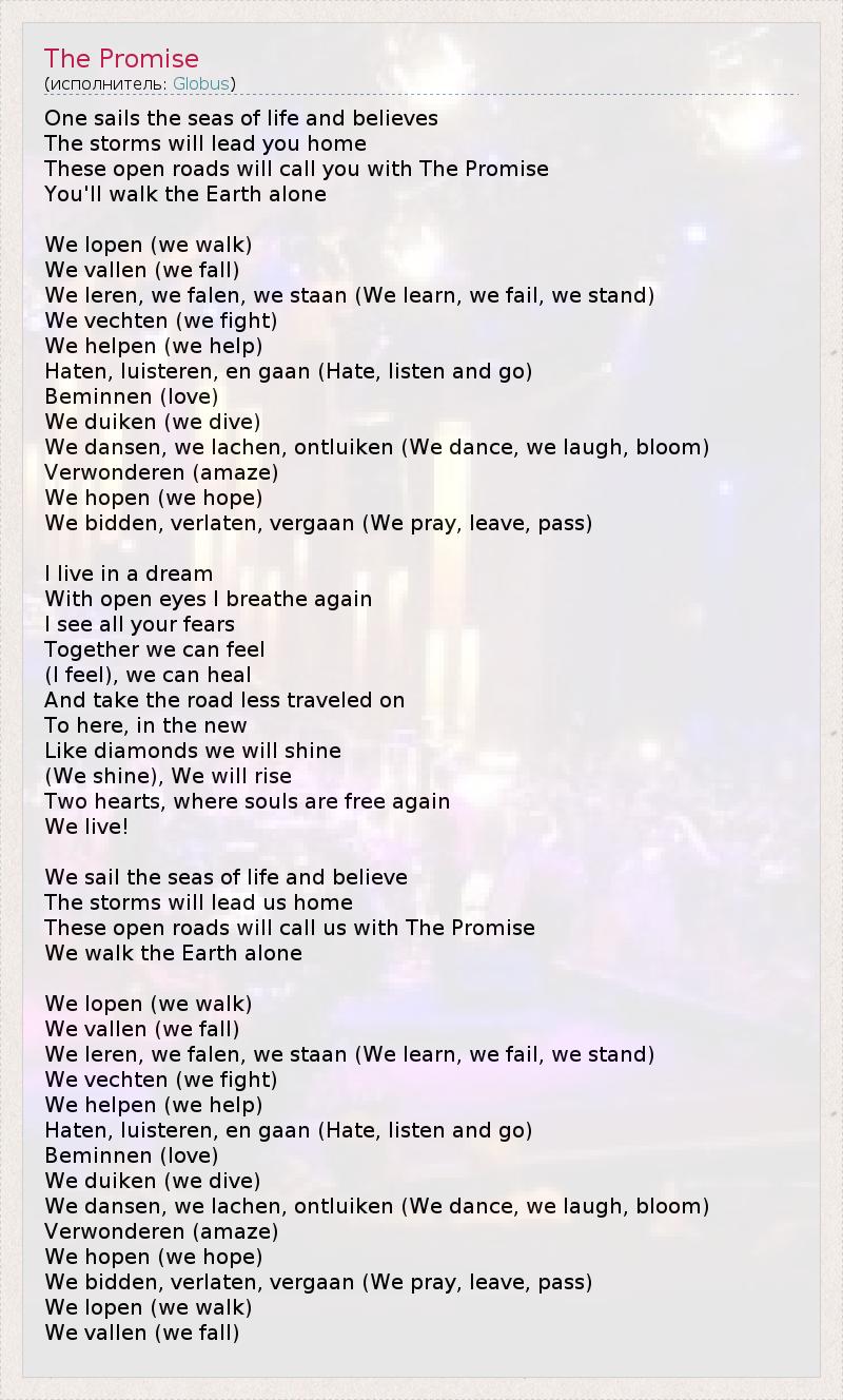 А как ты думаешь, о чем песня "The Promise" ?