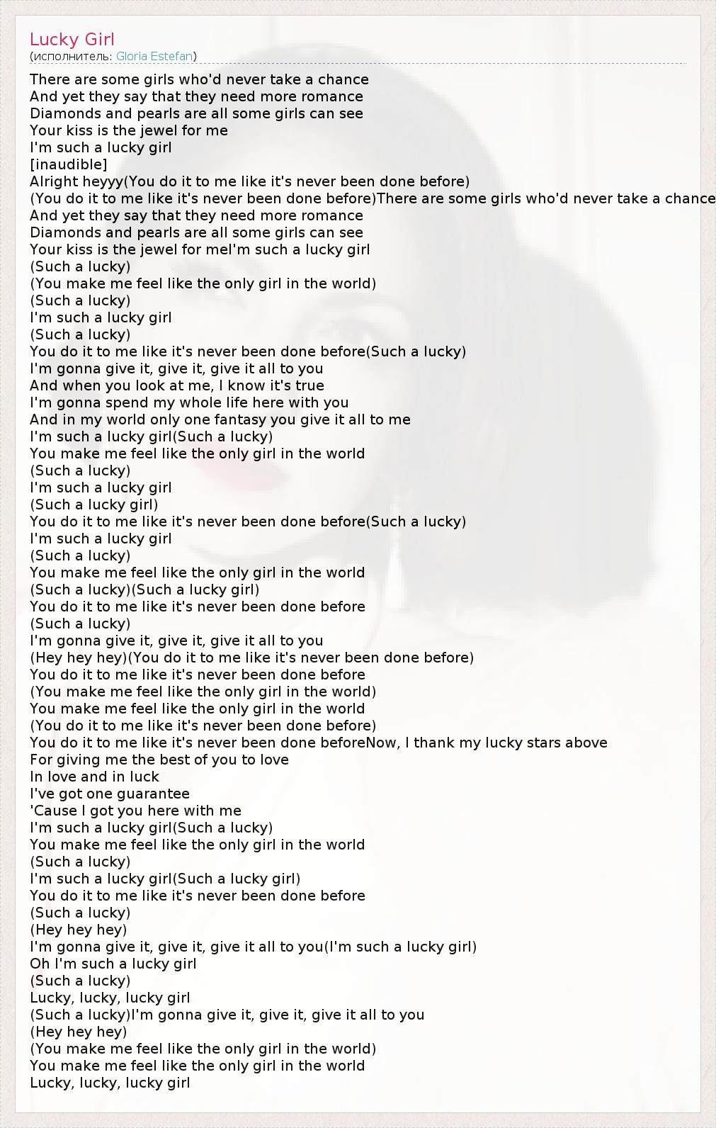 А как ты думаешь, о чем песня "Lucky Girl" ?