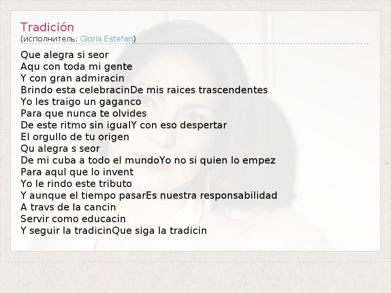 Это интересно:Широко известная как "королева латиноамериканской поп-музыки" Глория Эстефан, продав около 45 миллионов копий своих записей, стала самой успешной исполнительной певицей за всю историю латиноамериканской музыки. Певица родилась 1 сентября 1957 года в столице Кубы Гаване в семье Хосе Мануэля Фаджардо, кубинского солдата из подразделения, охраняющего семью президента Кубы генерала... продолжение