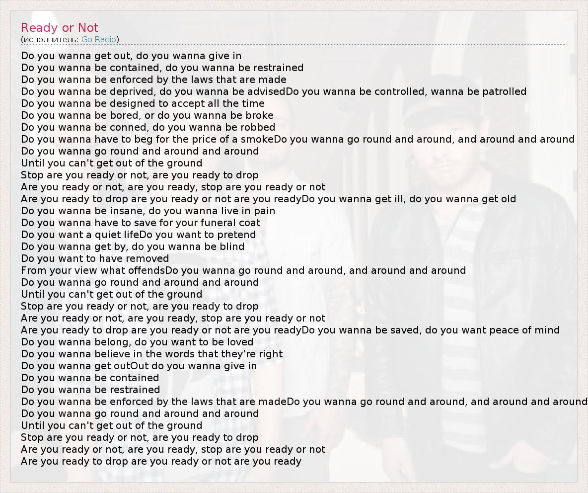 А как ты думаешь, о чем песня "Ready or Not" ?
