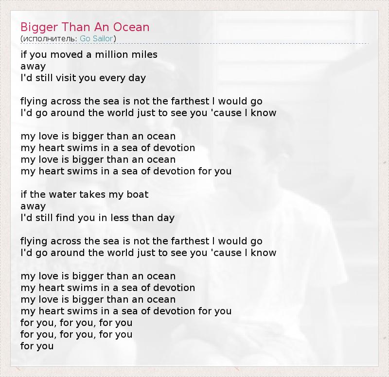А как ты думаешь, о чем песня "Bigger Than An Ocean" ?