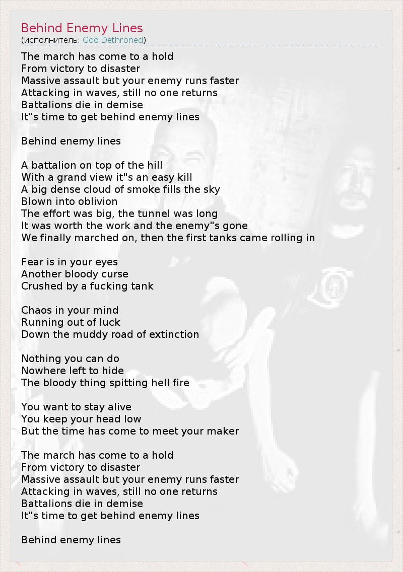 А как ты думаешь, о чем песня "Behind Enemy Lines" ?