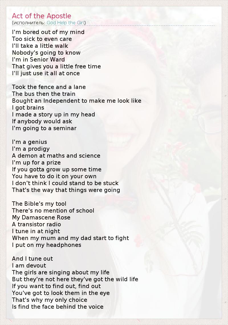 А как ты думаешь, о чем песня "Act of the Apostle" ?