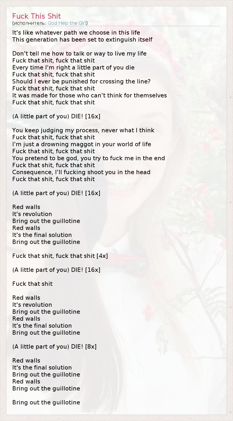 А как ты думаешь, о чем песня "Fuck This Shit" ?