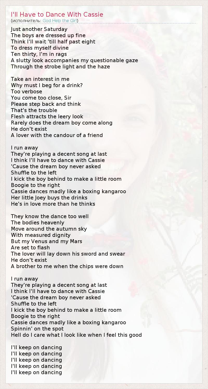 ГлавнаяИсполнителиGod Help the GirlI'll Have to Dance With Cassie