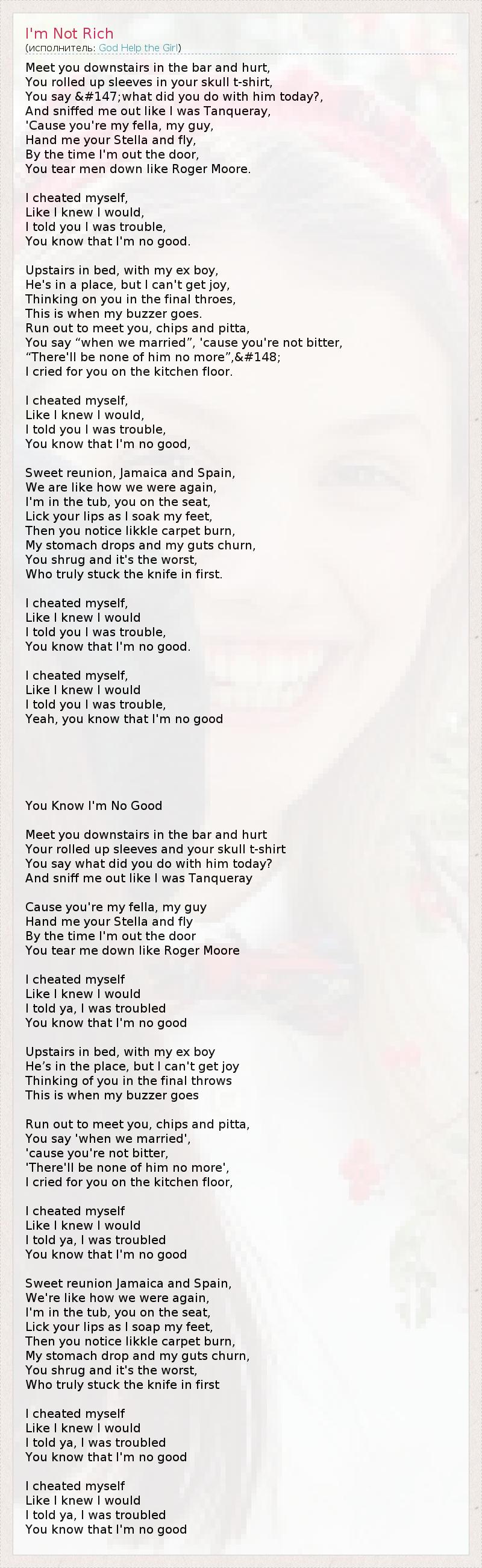 А как ты думаешь, о чем песня "I'm Not Rich" ?