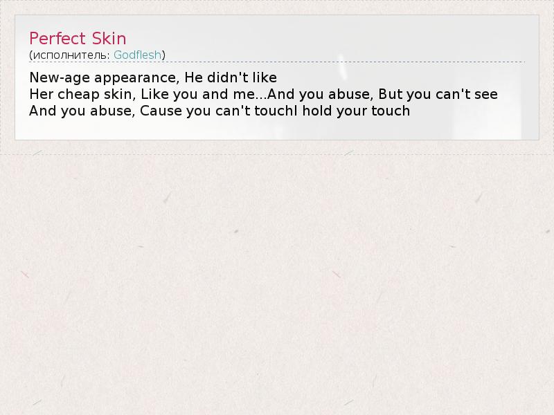 А как ты думаешь, о чем песня "Perfect Skin" ?