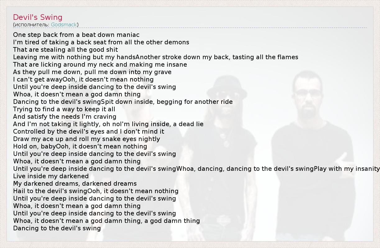 А как ты думаешь, о чем песня "Devil's Swing" ?
