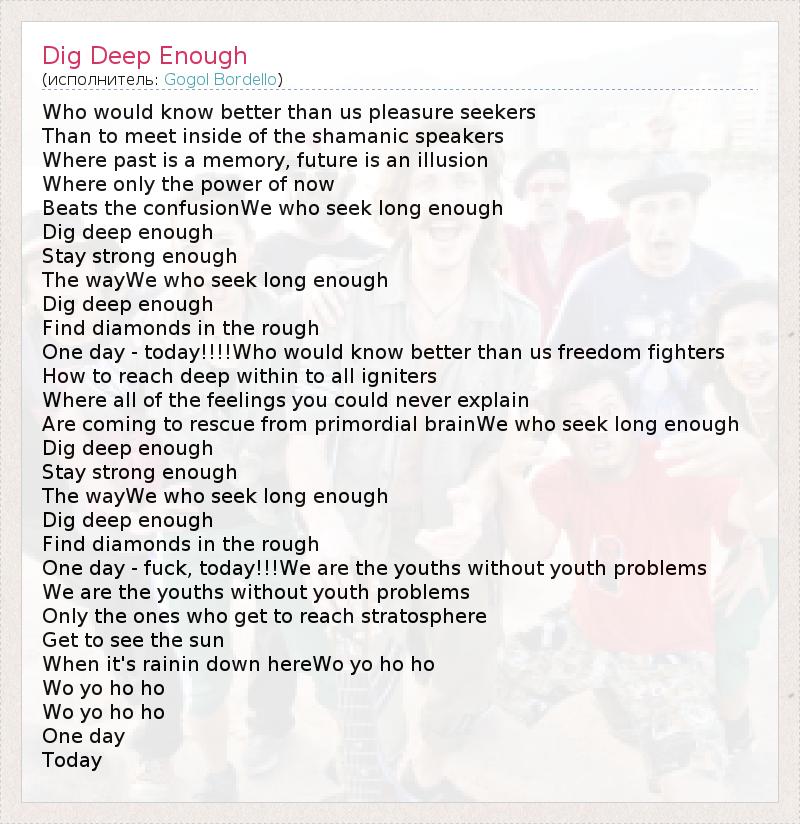 А как ты думаешь, о чем песня "Dig Deep Enough" ?