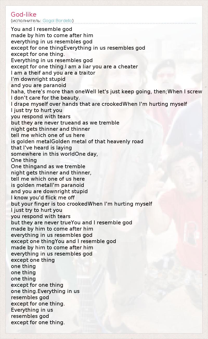 А как ты думаешь, о чем песня "God-like" ?