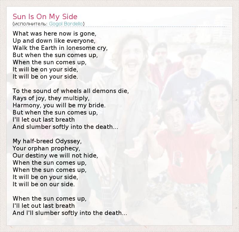 А как ты думаешь, о чем песня "Sun Is On My Side" ?