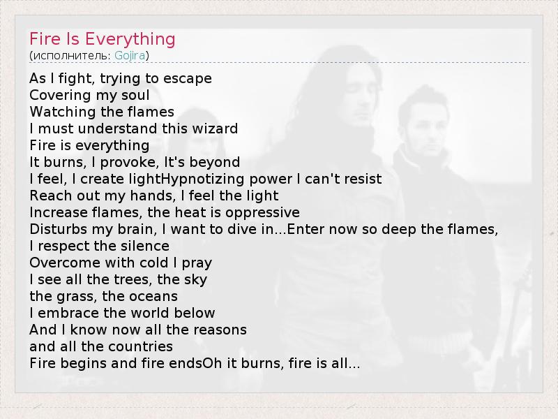 А как ты думаешь, о чем песня "Fire Is Everything" ?