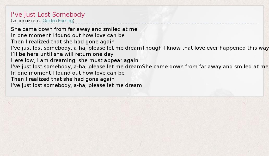 А как ты думаешь, о чем песня "I've Just Lost Somebody" ?