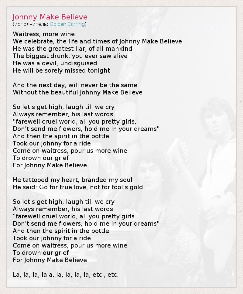 А как ты думаешь, о чем песня "Johnny Make Believe" ?